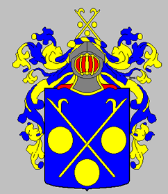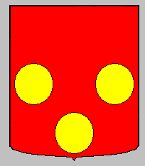 These arms are known since 1190 and are based on the oldest arms of the Counts of Gelre. They consisted of three red roundels on a golden shield. The first use of arms by a Lord of Borculo dates from 1299 when they were carried into battle. The banner he carried into the battle of Woeringen consisted of Gold with three red cakes. These cakes, or balls, are still present in the city's coat of arms, although the colors have changed. (most liley to reflect the Gelderland's Provincial colors of Blue and Gold. Henderik III of Borculo carried in 1288 (according to Jan van Heelu) in the battle by the castle of Woeringen, near Cologne. Henderik, who was a knight and a great politcal supportor, died in the battle of Woeringen that year. His widow Agnes, carried in 1288 on her oval-shaped seal, her own image including a three-colored shield with the three cakes of Borculo. Even though the Borculo estate was a possession of many families since, the roundels remained in the arms. When and why the colours have changed is not exactly known. The Provincial Gelderland colors may have been integrated at some later point The hooks in the arms are hooks used to handle ships or river barges. Their origin is not known. They are known from a seal of the city dating from 1524. The helmet and crest appear in the 17th century. The arms were officially granted in 1816.